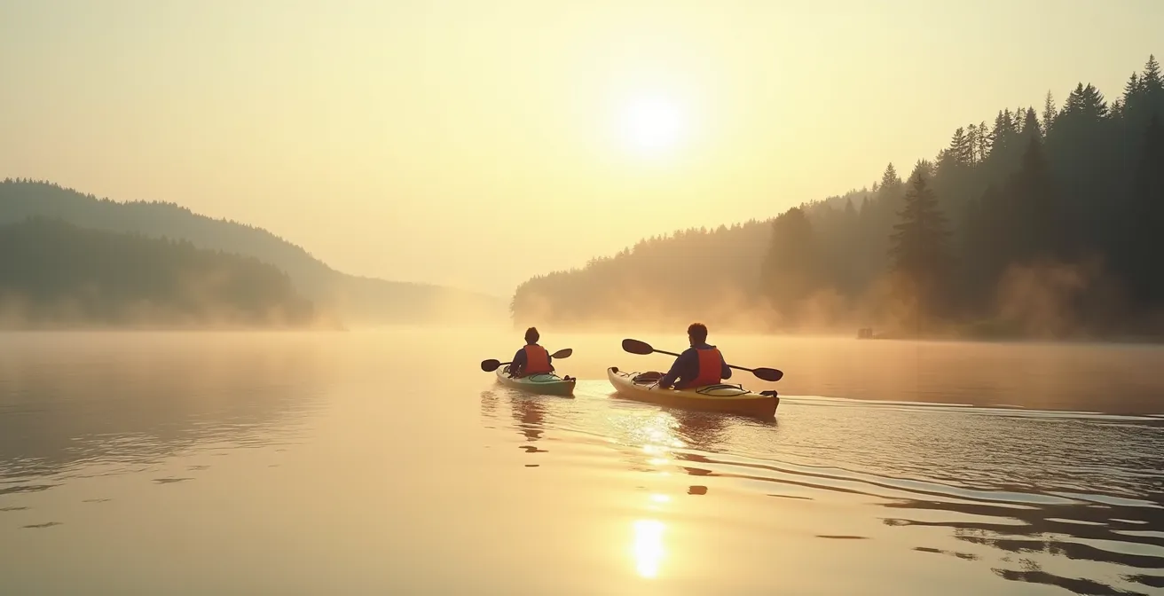 Die Wahl der Jahreszeit hat einen direkten Einfluss auf Ihre Sicherheit und Ihr Wohlbefinden. Während Profis das ganze Jahr über paddeln, sollten Anfänger sich strikt an die warme Jahreszeit halten. Der entscheidende Faktor ist nicht die Luft-, sondern die Wassertemperatur. Eine Kenterung in kaltem Wasser kann innerhalb von Minuten zu einem Kälteschock führen, der die Muskelkontrolle lähmt und das Atmen erschwert. Diese Gefahr ist im Frühling, wenn die Luft schon warm, die Seen aber noch eiskalt sind, besonders hoch und wird oft unterschätzt. Das Paddeln ohne entsprechende Schutzkleidung wie einen Neopren- oder Trockenanzug ist bei niedrigen Wassertemperaturen grob fahrlässig.